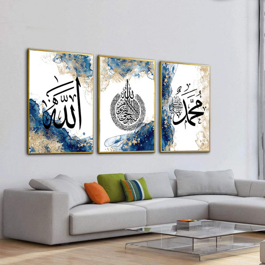 En venteBlue-Gold Islamic Modern Wall Decor