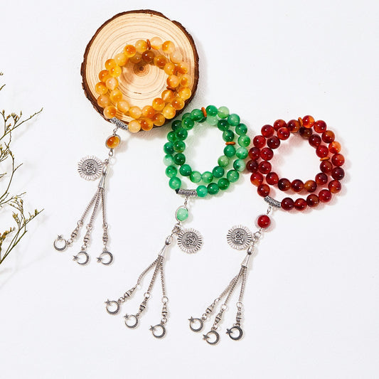 Real Agate With Star-moon Tassel Tasbih Misbaha