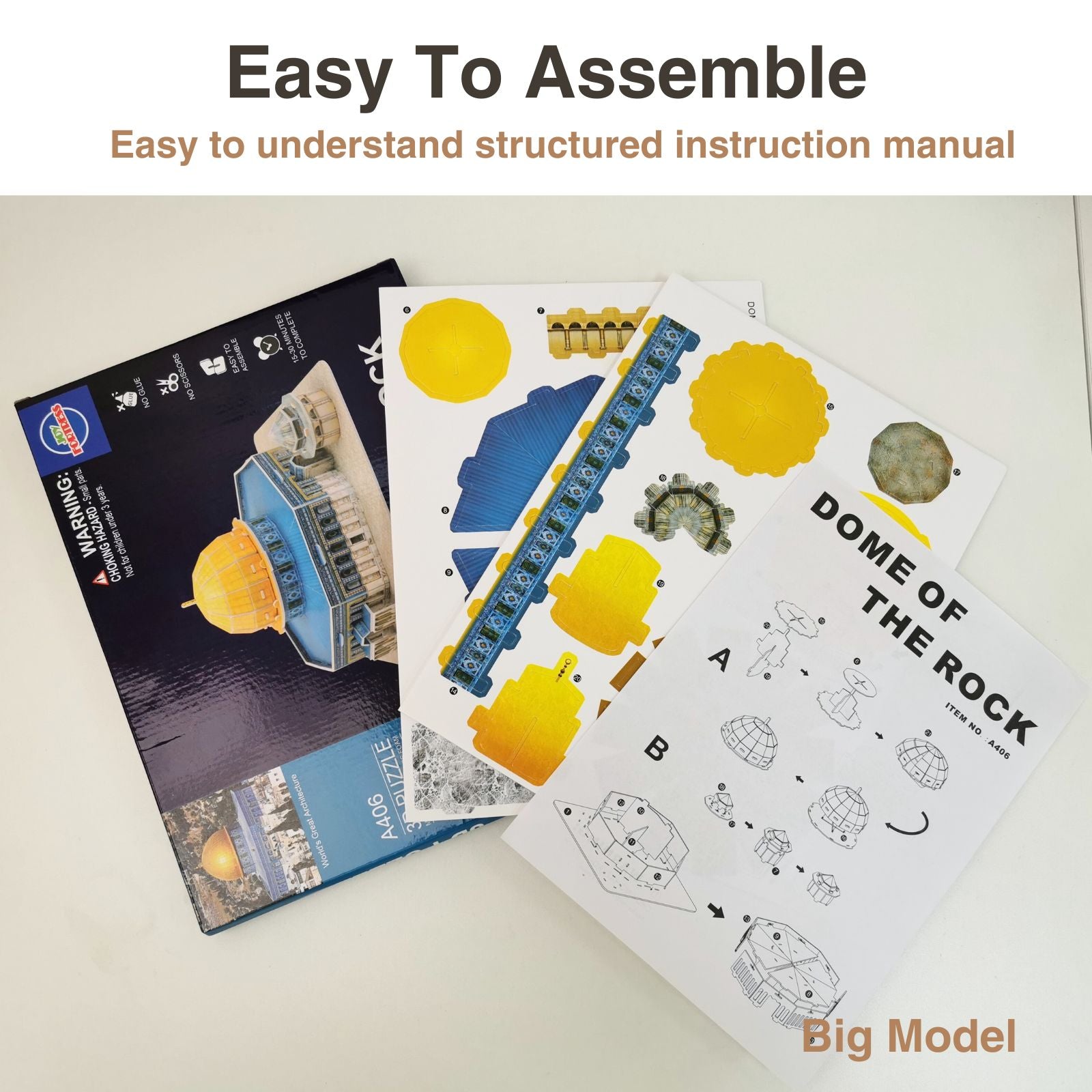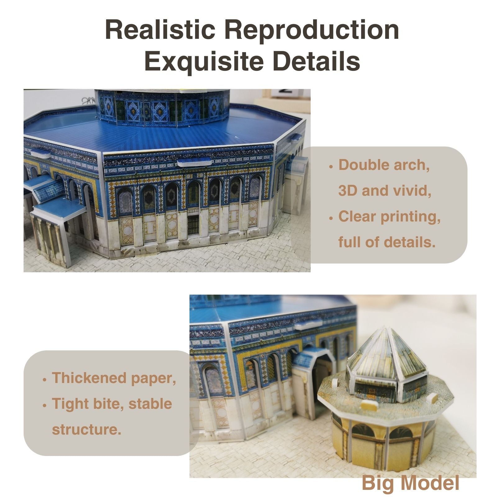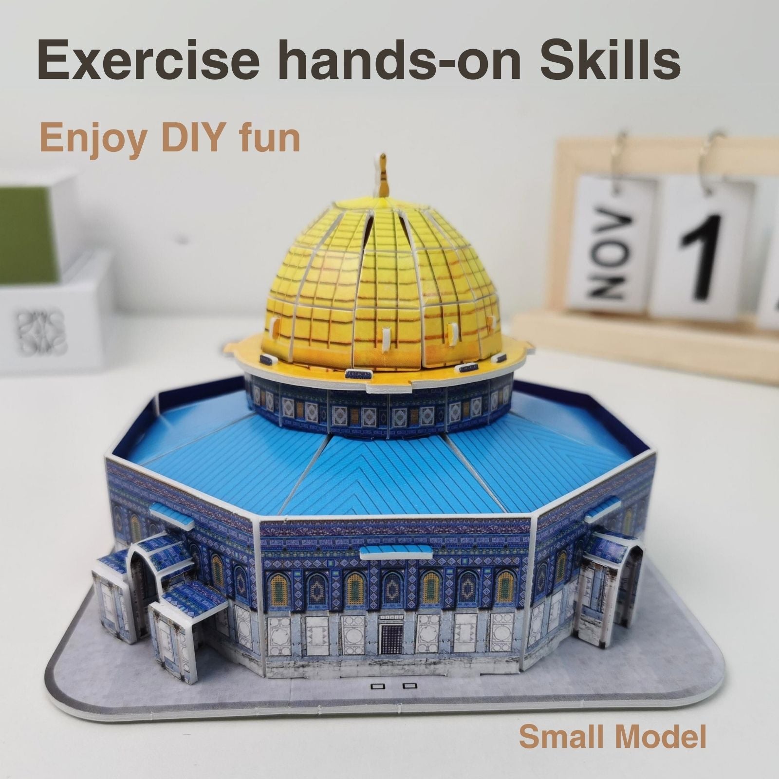 This is 3D paper puzzle of The Dome of The Rock, consisting of small paper cards (EPS foam board with double-sided coated paper), suitable for children over 6 years old and adults.