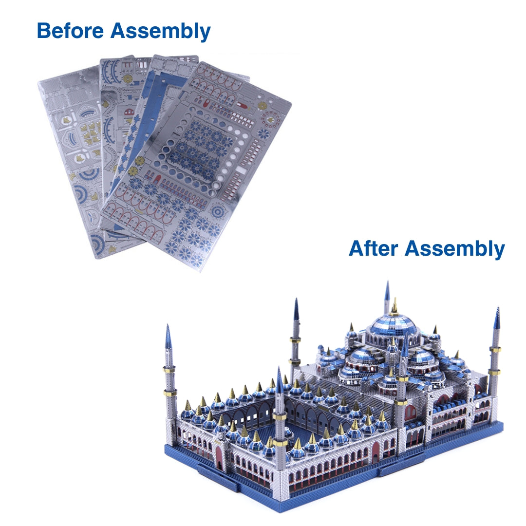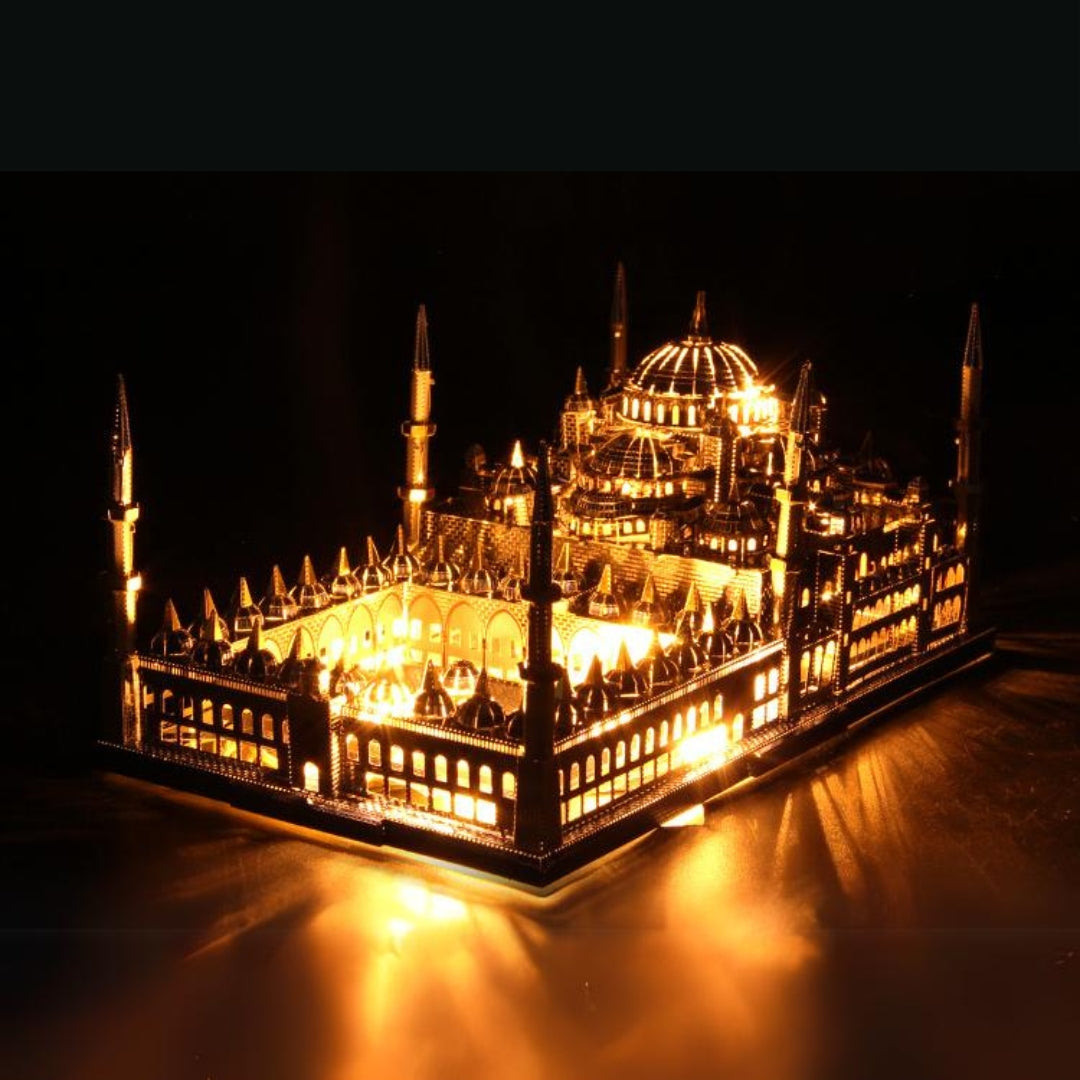 This is a 3D Metal Puzzle of the Blue Mosque (Sultan Ahmed Mosque) in Turkey. It consists of 229PCS small pieces. Difficulty Degree: 6 Stars out of 10. Recommended for age14+ teens and adults.
