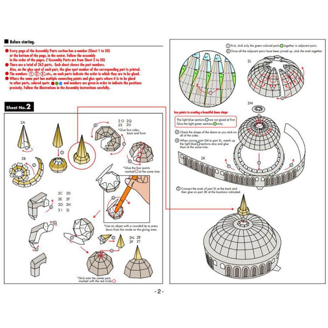 This is a 3D handmade DIY building paper model kit of Blue Mosque in Turkey, it needs to be assembled by yourself, the difficulty level is 4 (6 levels in total).
