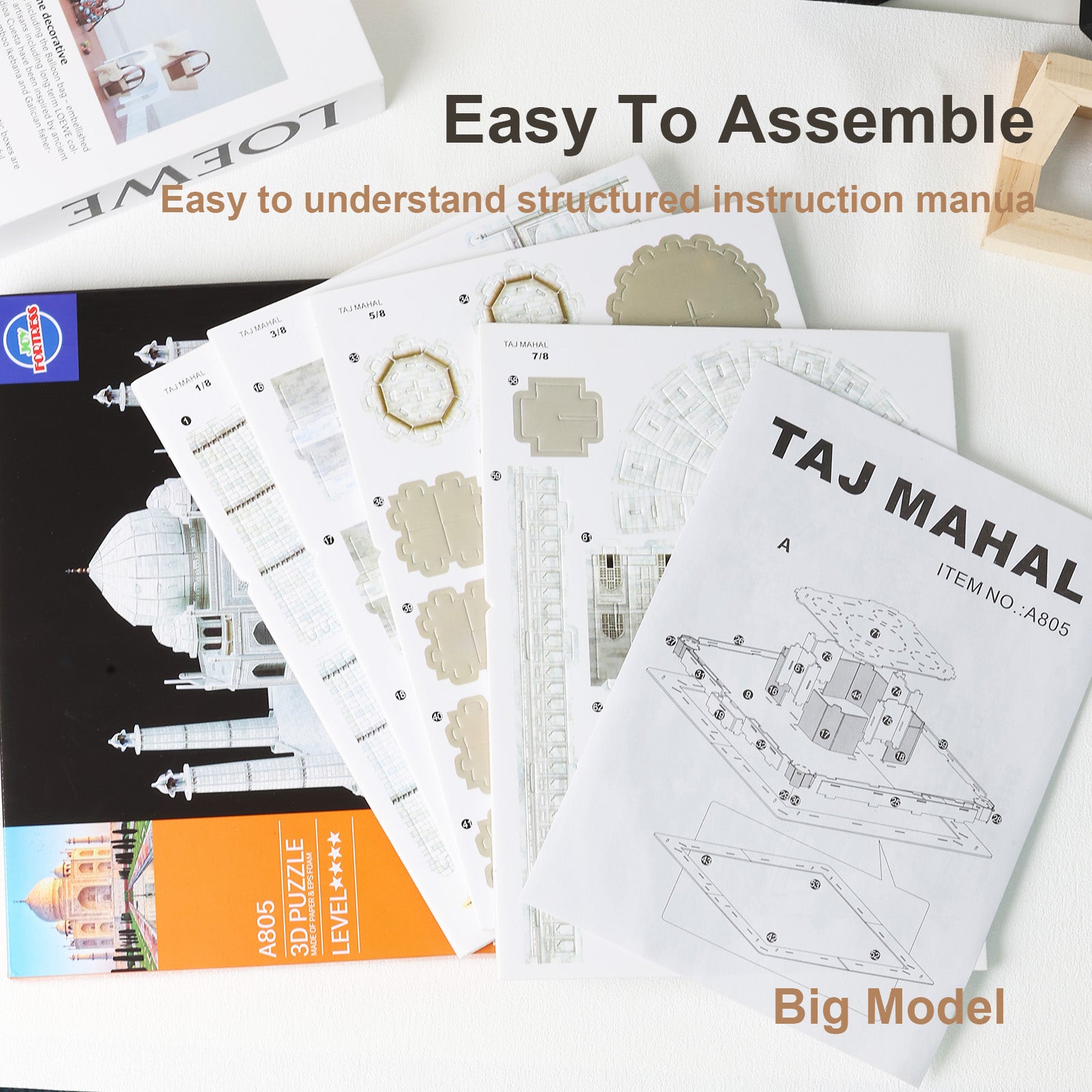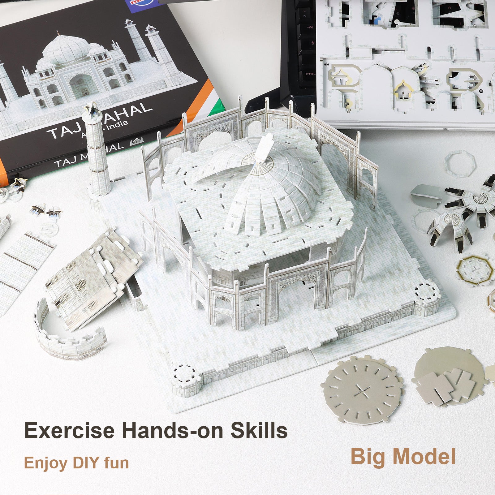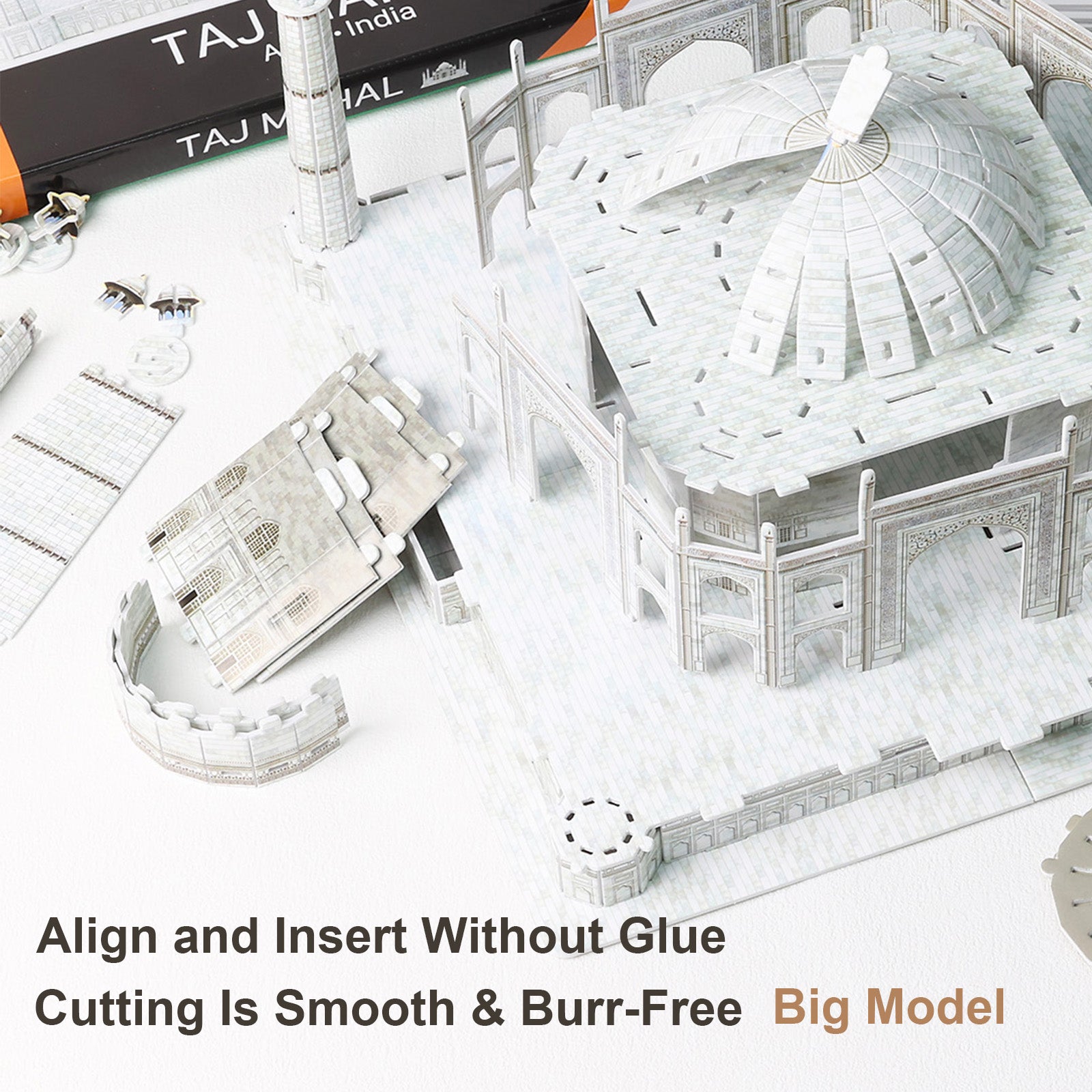 This is a 3D paper puzzle of the Taj Mahal in India. It consists of small paper cards (EPS foam board with double-sided coated paper), and is suitable for children over 6 years old and adults.