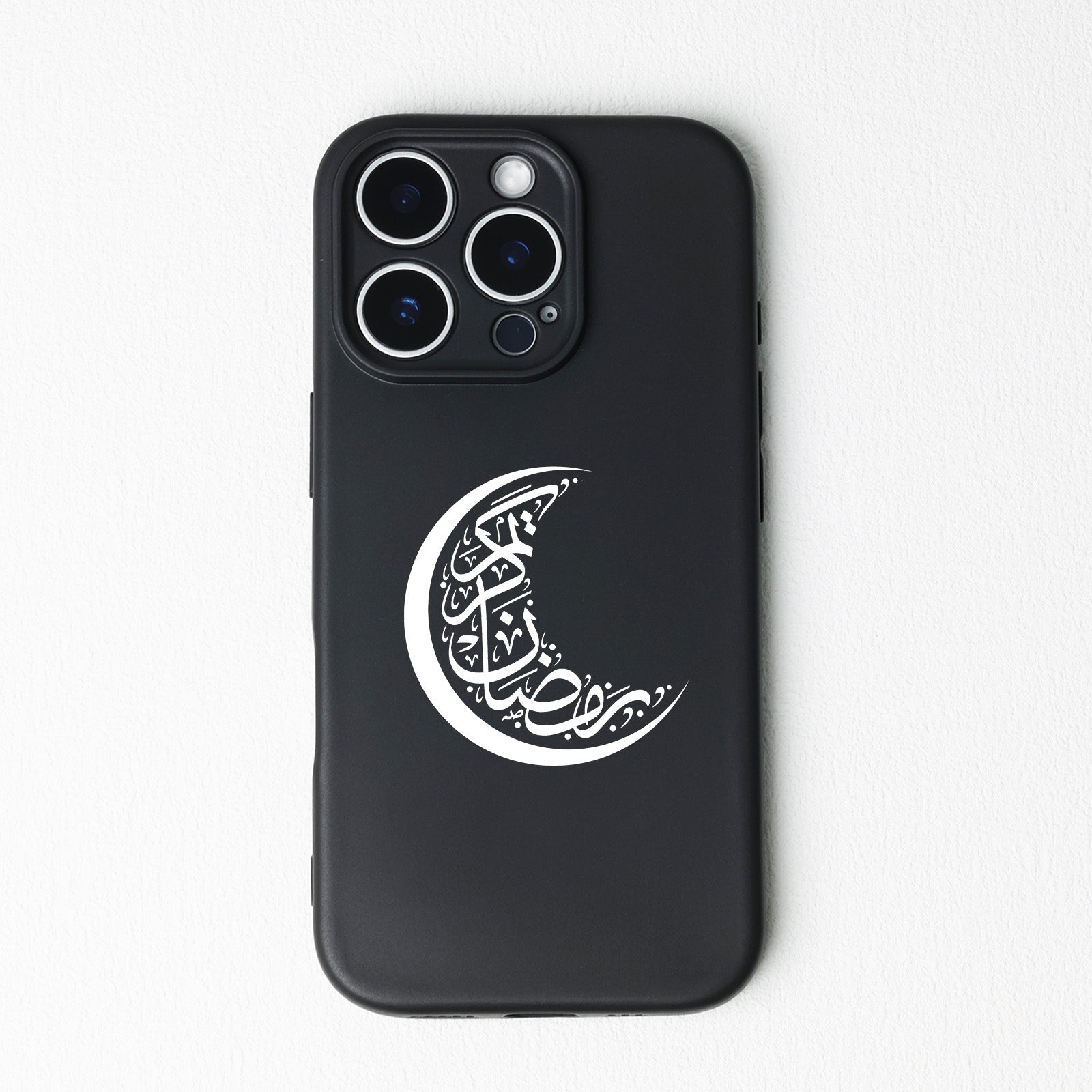 This phone case beautifully celebrates the arrival of Ramadan, the most sacred and honored month in Islam. The Arabic phrase "رمضان كريم" ("Ramadan Kareem") is elegantly written in calligraphy, forming the shape of a crescent moon. The crescent moon is a powerful symbol in Islamic culture, often associated with the beginning of Ramadan and the celebration of the holy month. Just as Muslims decorate homes with lights, lanterns, and symbols of the crescent to welcome Ramadan, this phone case serves as a modern decoration to carry the festive spirit. The white calligraphy against the black background not only enhances the beauty of the design but also reflects the joy and reverence with which we embrace the holy month.