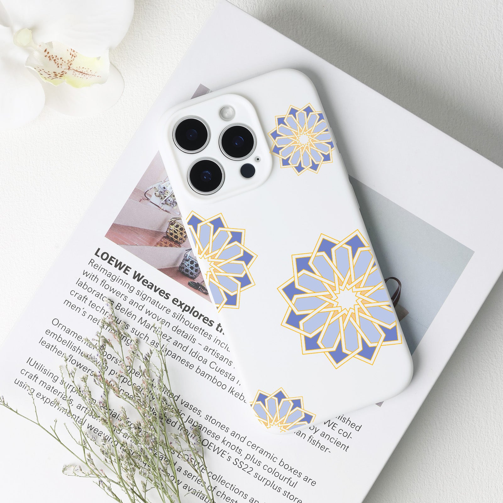 MyDina Islamic geometric phone case is inspired by the elegance of traditional Islamic art, blending timeless patterns with modern minimalism. The intricate geometric motifs, commonly found in Islamic architecture and manuscripts, symbolize unity, infinity, and the divine order of the universe. These interwoven star patterns reflect the harmony and complexity of creation. The gold accents add a touch of sophistication, enhancing the beauty of the design. Designed to reflect both faith and aesthetics, this case brings a meaningful and artistic touch to your everyday essentials.