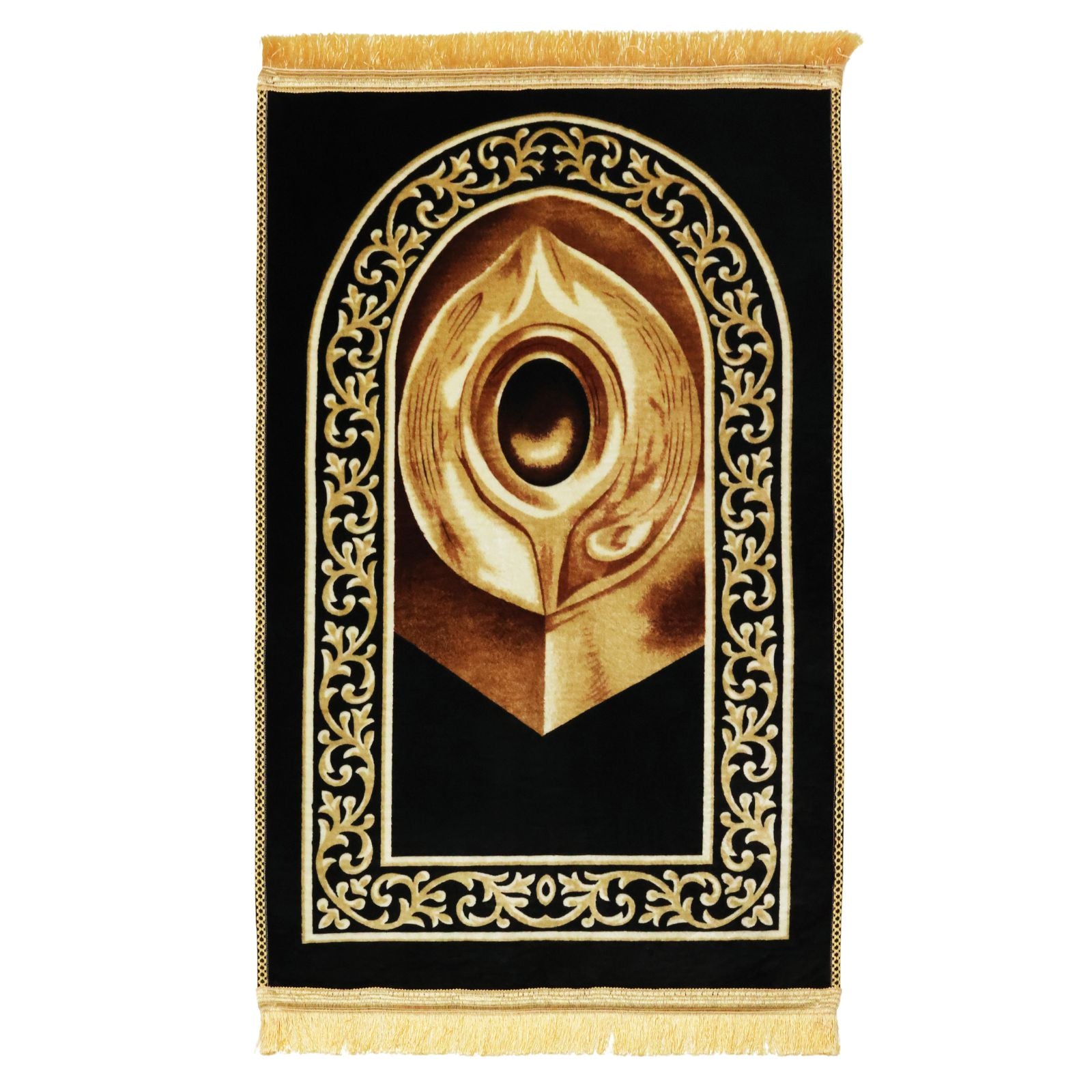 Looking for a classic, timeless yet soft prayer mat? The MyDina black stone sajjadah has a classic pattern and black-gold color scheme that everyone loves, and the relatively thick material makes it softer and more comfortable.