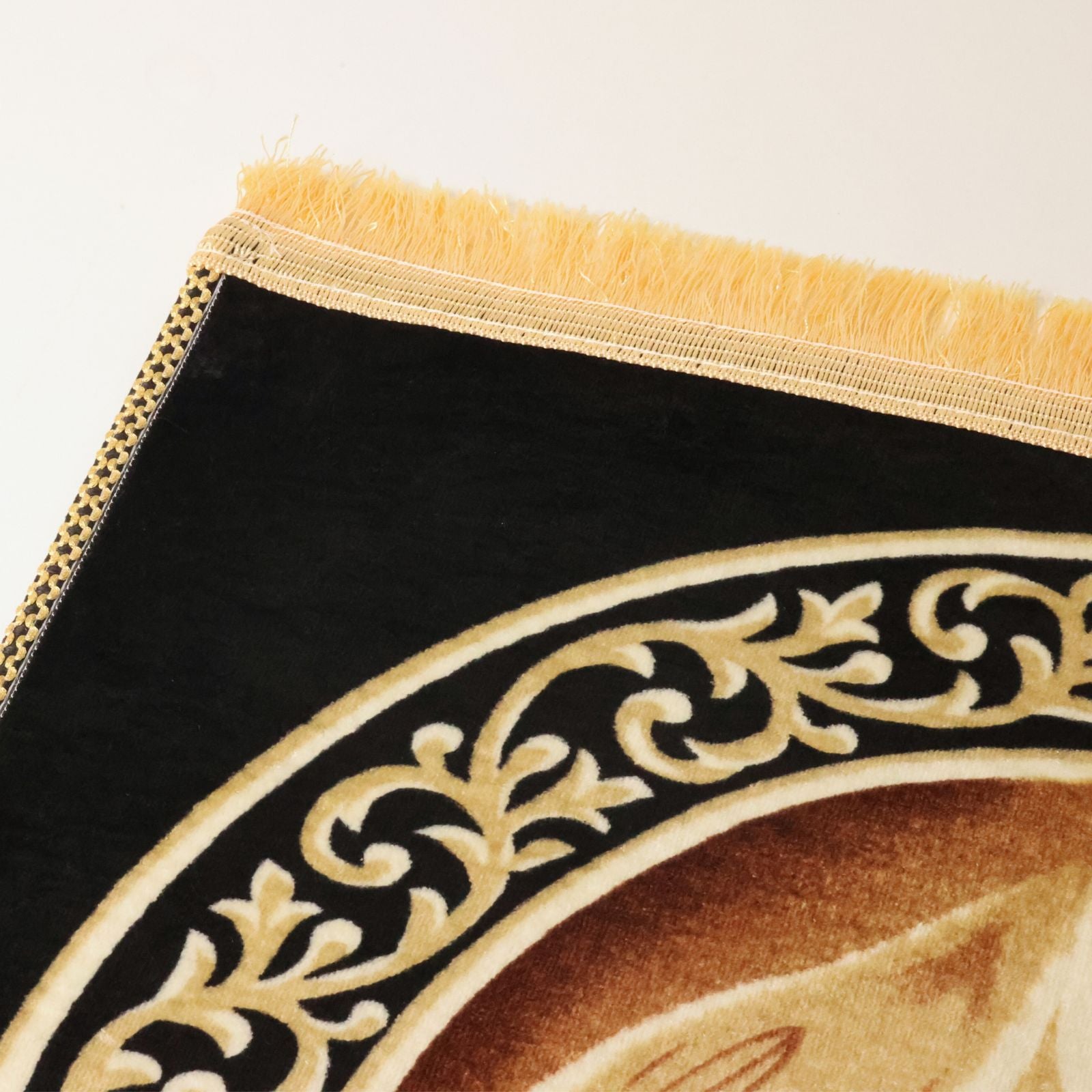 When you first see this Muslim prayer rug, you will be attracted by its solemn and majestic appearance. The musala uses the black stone in the Kaaba as the main pattern, surrounded by Islamic vine-patterned arches, and the gold color stands out against the black background. The prayer sajjadah is surrounded by gold wire edges, which makes the details more exquisite.